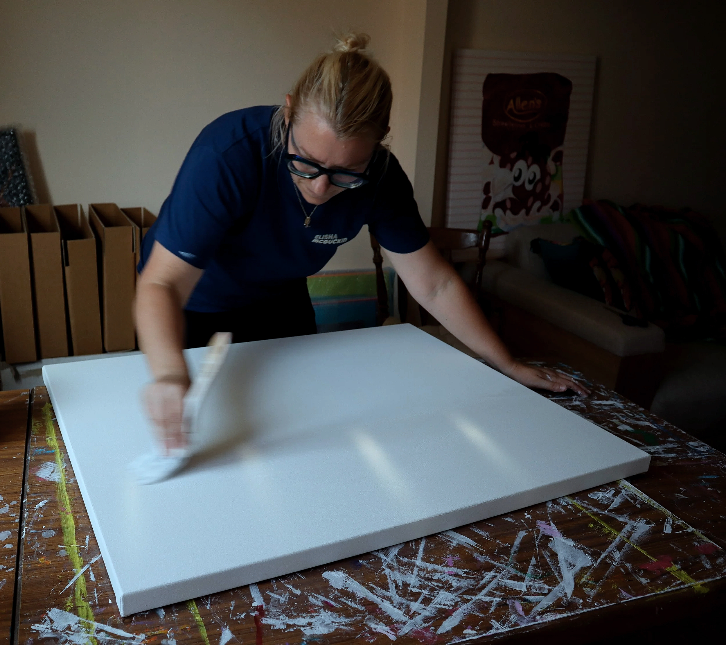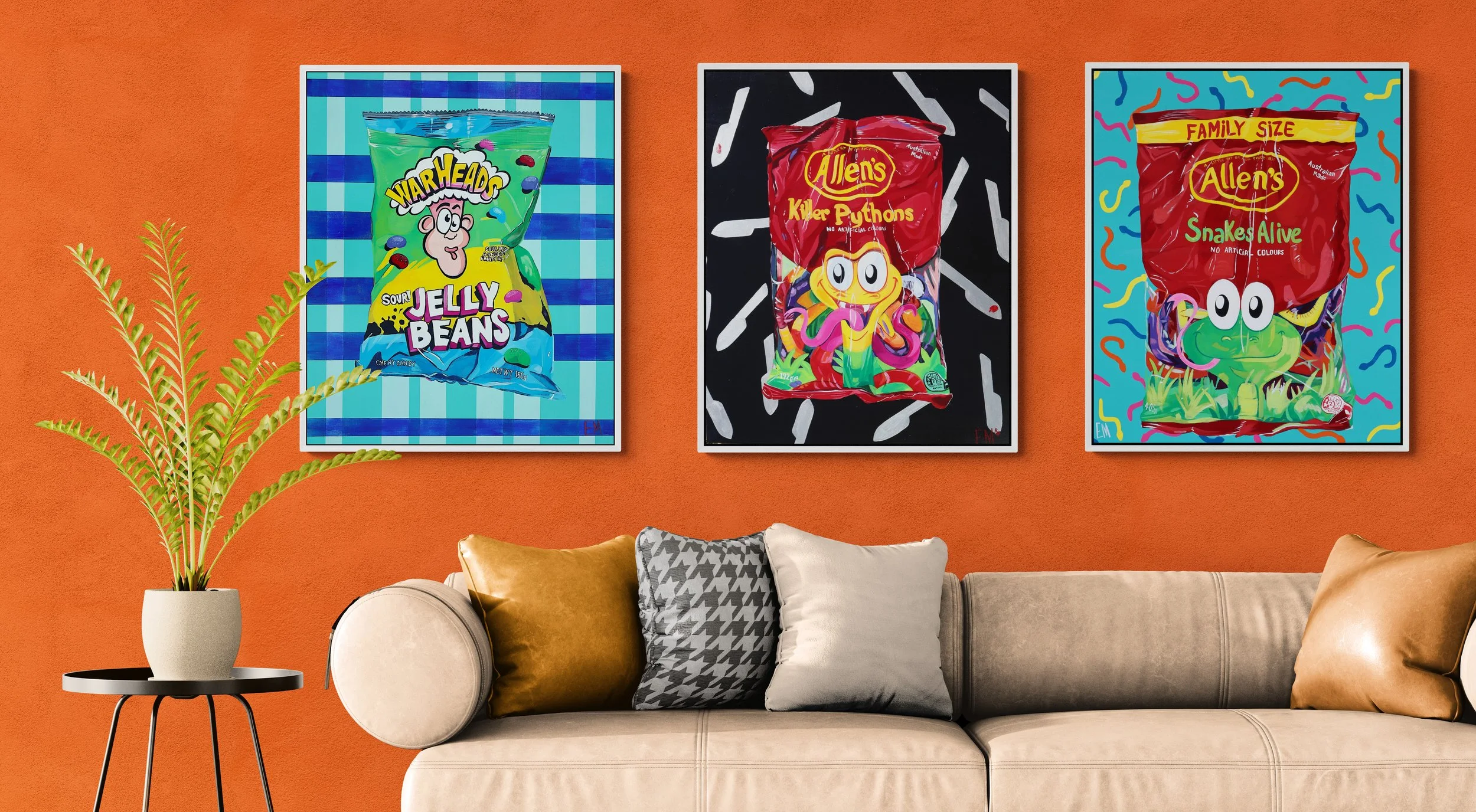 Based in Binningup Western Australia, Elisha works in her home based studio. Her striking artwork evokes a sense of nostalgia and joy. Fascinated by pop culture and inspired by everyday objects she invites collectors to pause and celebrate life’s ordinary yet profound moments. Collections featuring iconic snacks, retro subjects and moments of motherhood.